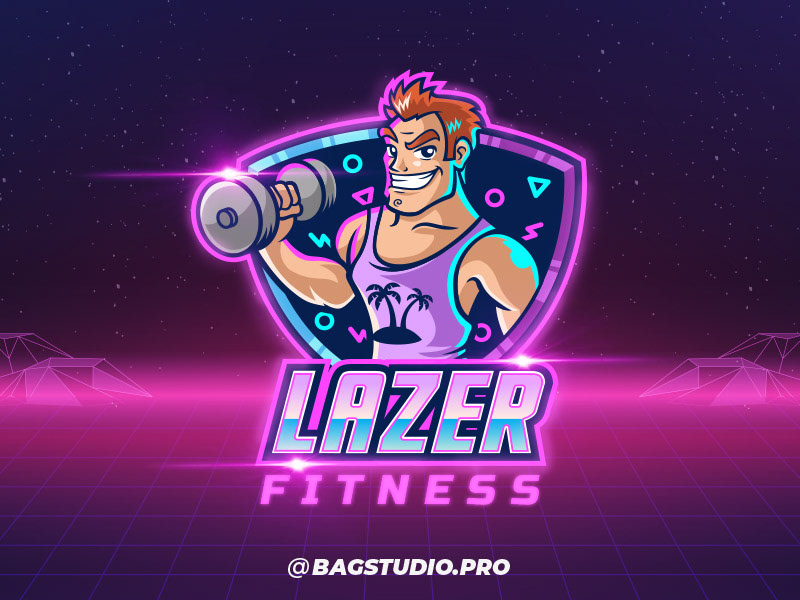 Lazer Fitness retro style cartoon vector logo
